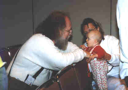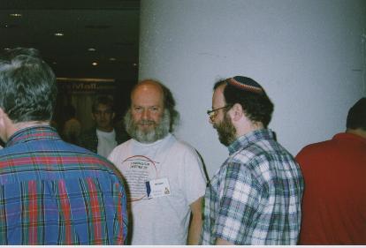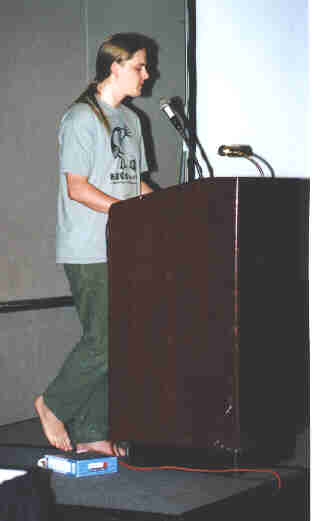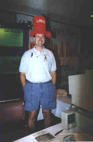 Maddog (Jon Hall) gives his Linux International spiel to Patricia.