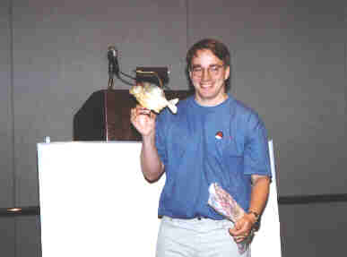Linus displays Maddog's Linux mascot of choice: a pirhana.